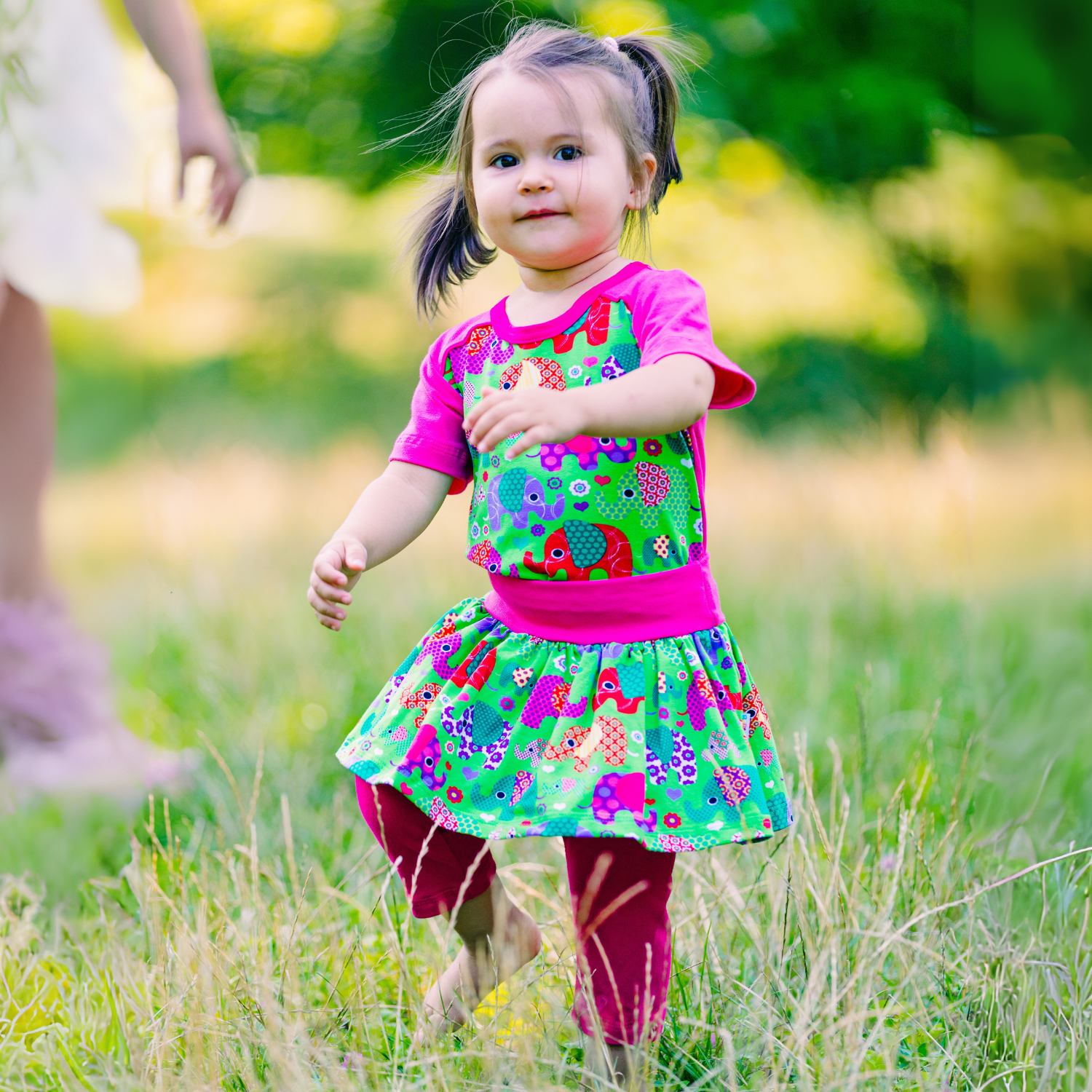 Mit unserem SkinnypantsRöckchen haben Kinder nicht nur einen süßen Rock, sondern auch gleich eine bequeme Leggings darunter – praktisch, oder? Dank des Knopflochgummis wächst das Teil sogar ein Stück mit und bleibt immer angenehm zu tragen. Der Baumwolljersey macht es besonders weich, atmungsaktiv und pflegeleicht – perfekt für Kita, Spielplatz und große Abenteuer!