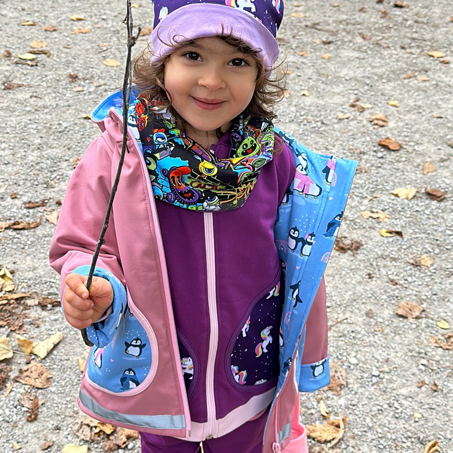 Am besten kombiniert man sie mit einer Softshellhose, verschiedenen Langarmshirts und Hoodies, so entstehen tolle und funktionale Outfits für Kinder.